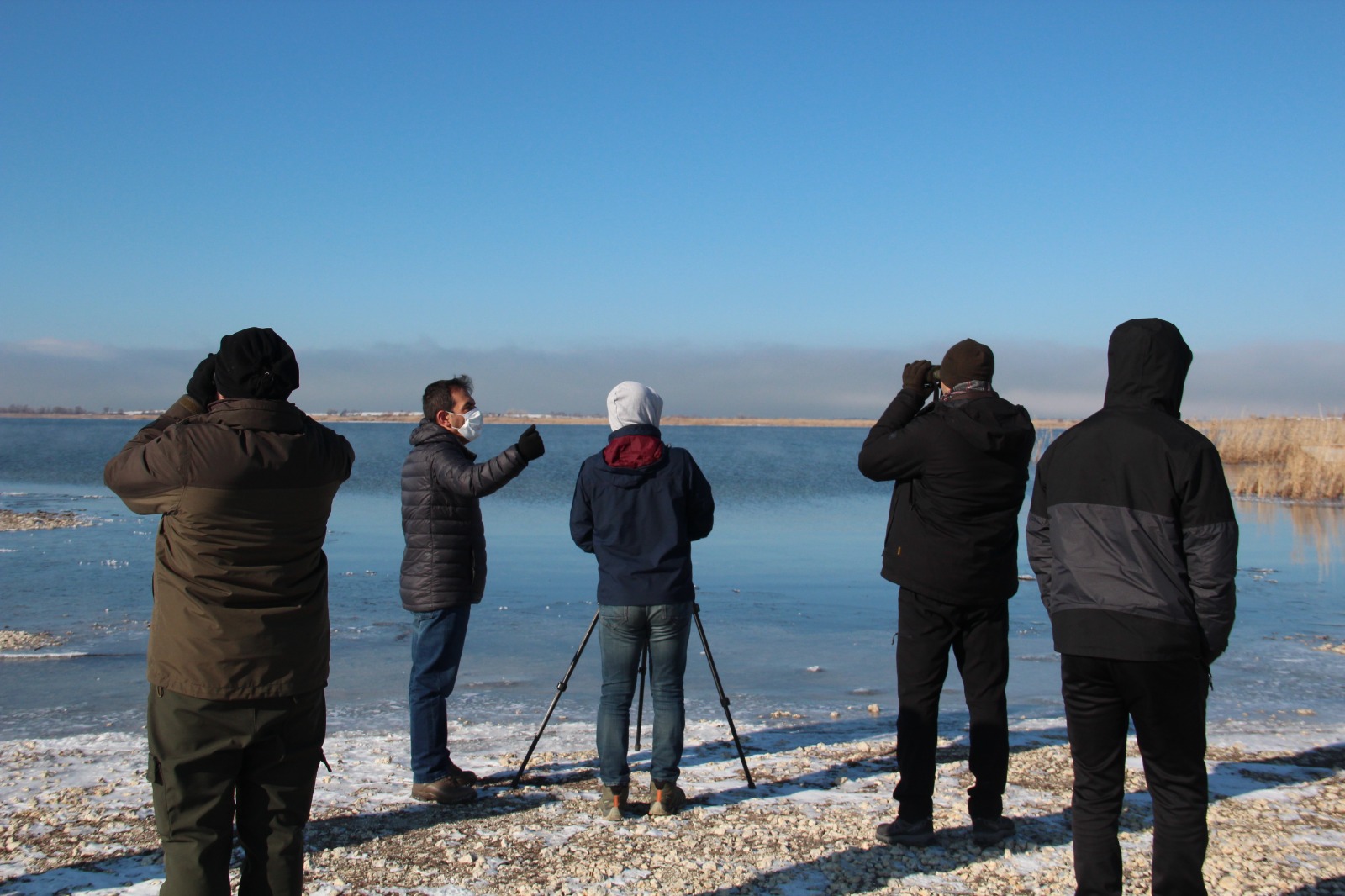kuş gözlemcilerine uygulamalı eğitim imkânı sunulmaktadır.